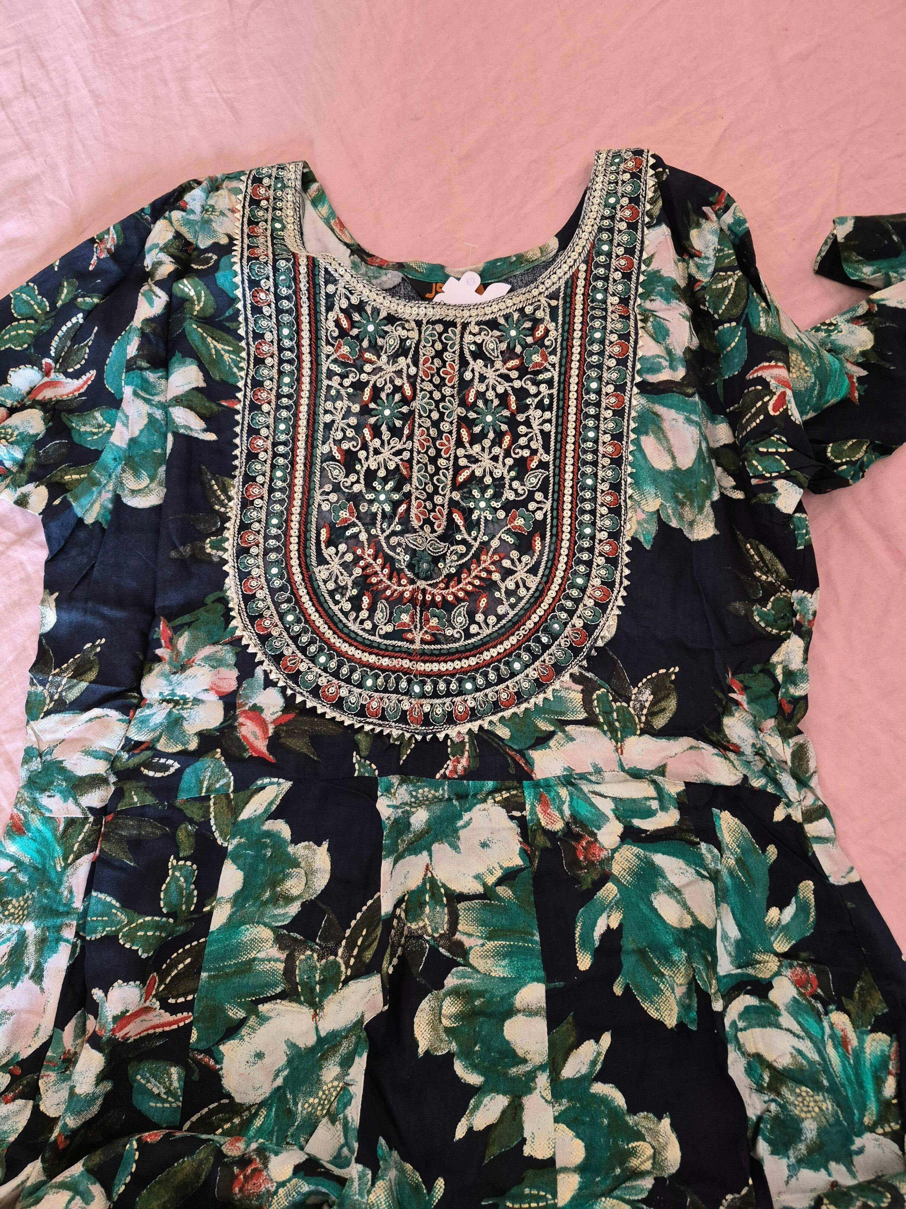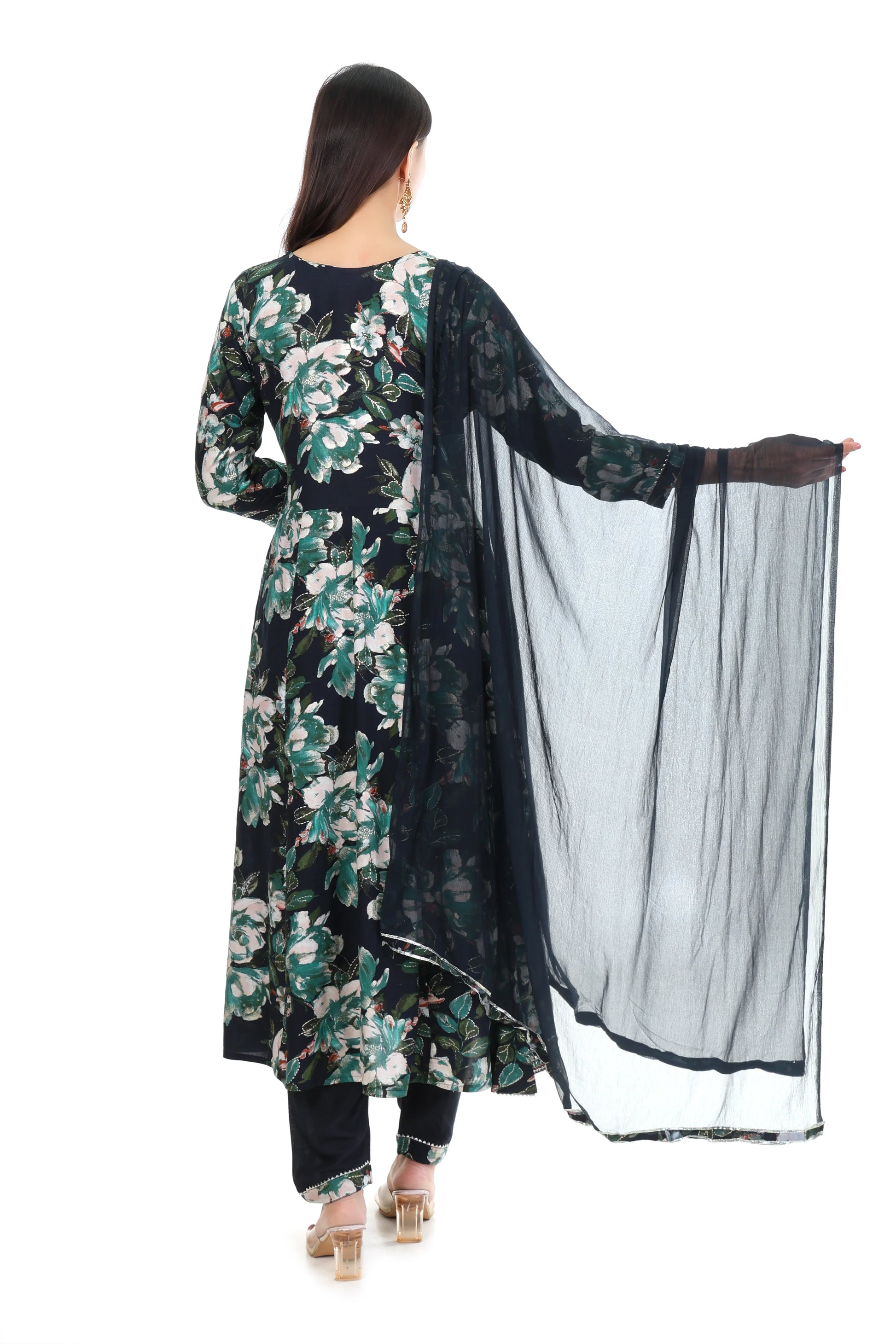 “This Navy Blue Floral Anarkali Suit Set is breathtaking! The flare is perfect, and the floral pattern looks very premium. The suit feels lightweight and comfortable. Got so many compliments!”